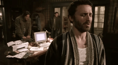 In Supernatural, “The Monster at the End of This Book” performs that function and opens the rest of the show up to unprecedented metareferential possibilities. In particular, the audience is called, through Chuck’s presence, to see Sam and Dean as characters whose stories have been authored. But they have not just been authored by any Joe Schmo off the street. As is revealed later in the episode, Chuck is a prophet of the Lord, a conduit for the Word of God. In that way, we can (possibly) understand their story as being authored, in the world of the show, by God himself, with Chuck as merely the one translating that story onto the page.